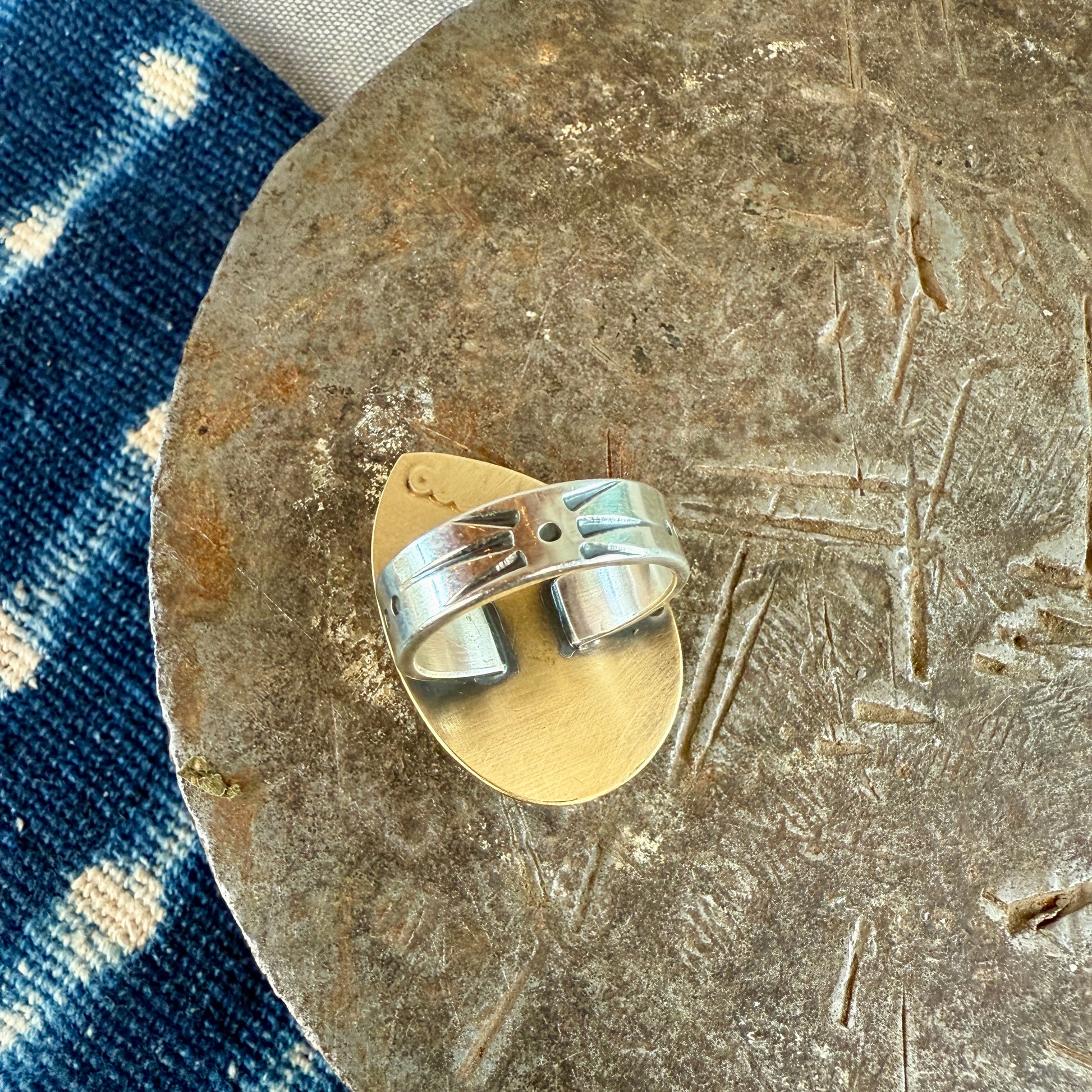 Pink and purple banded agate with hand-stamped border and stamped band.