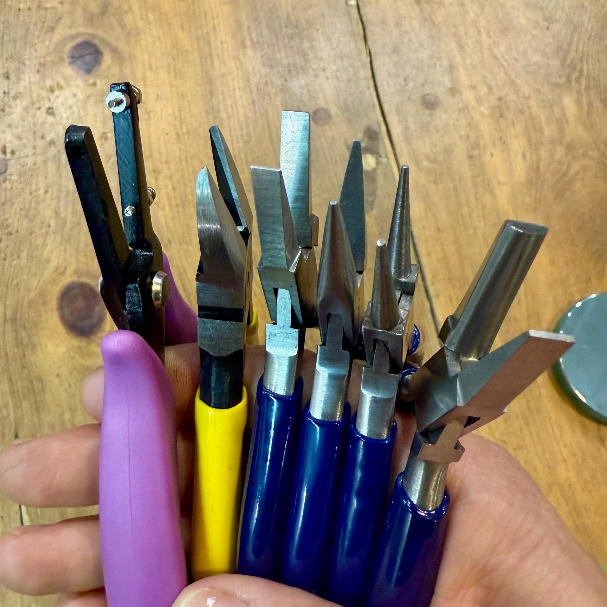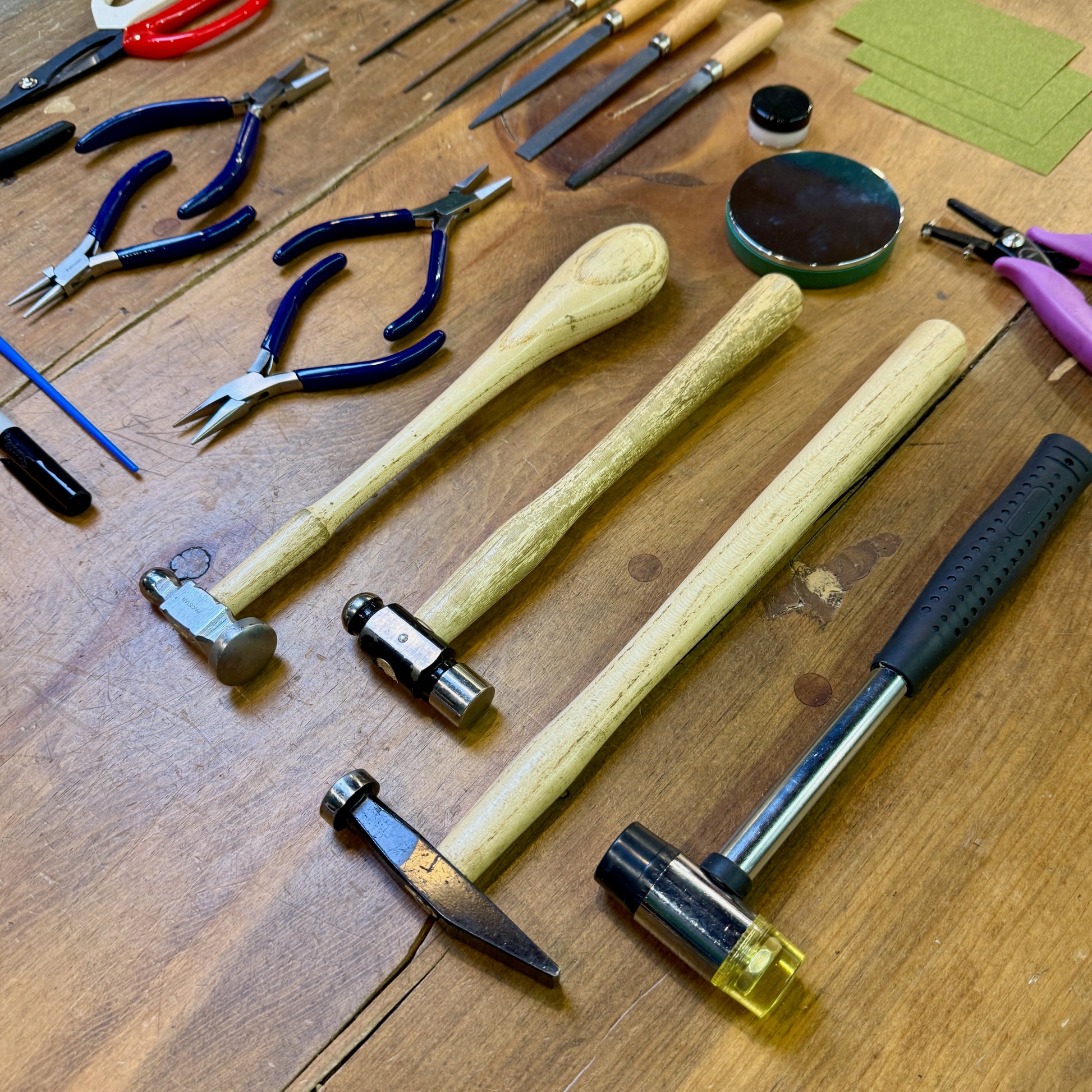 I have sourced all the best budget friendly tools and have also portioned out two sheet metal options, 6 different wire choices, the right size jump rings and ear wires, and even some wax to seal your work.