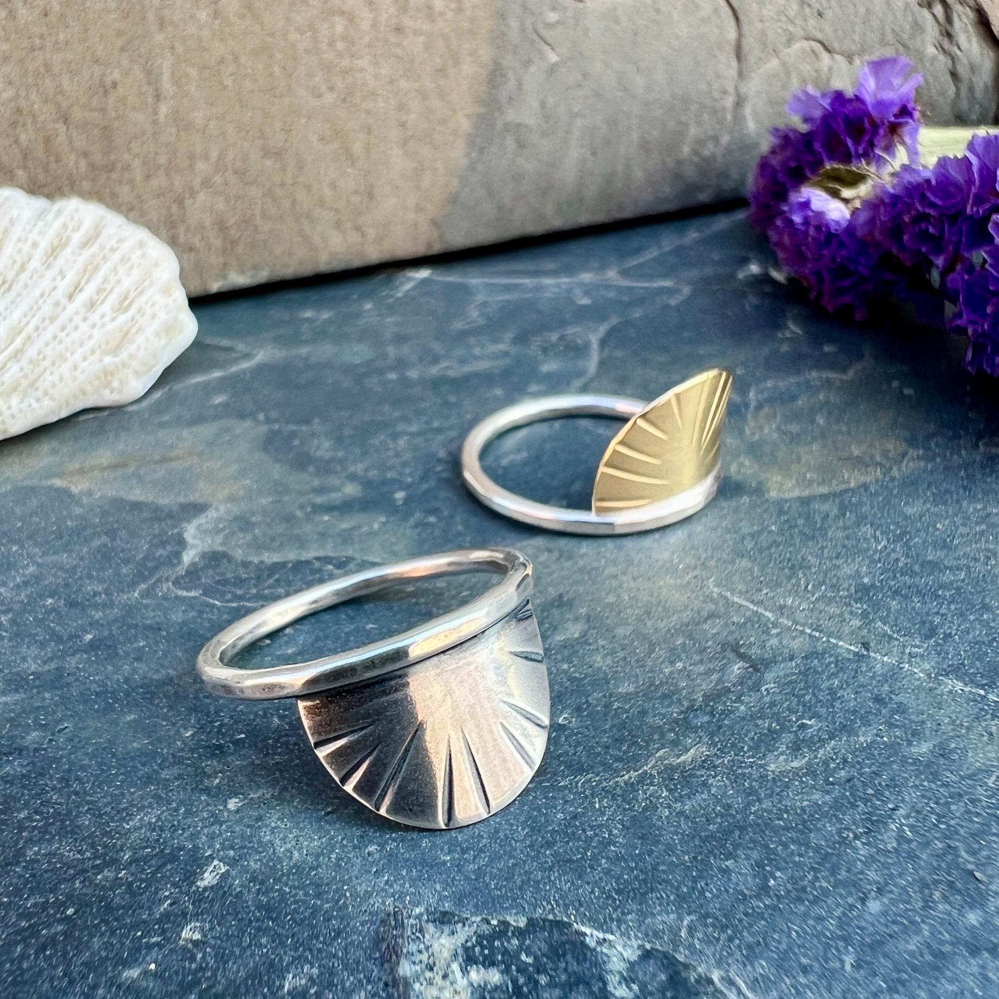 SILVER: Sterling silver is often labeled as 925 silver. This means that 7.5% copper has been added to the silver to make it stronger and more suitable for regular wear. I do not label all of my silver jewelry because it creates a dent which effects the design, but I can assure you that everything that "looks" silver in my work is sterling silver. The only exception being the bezels around stones, which are fine silver.