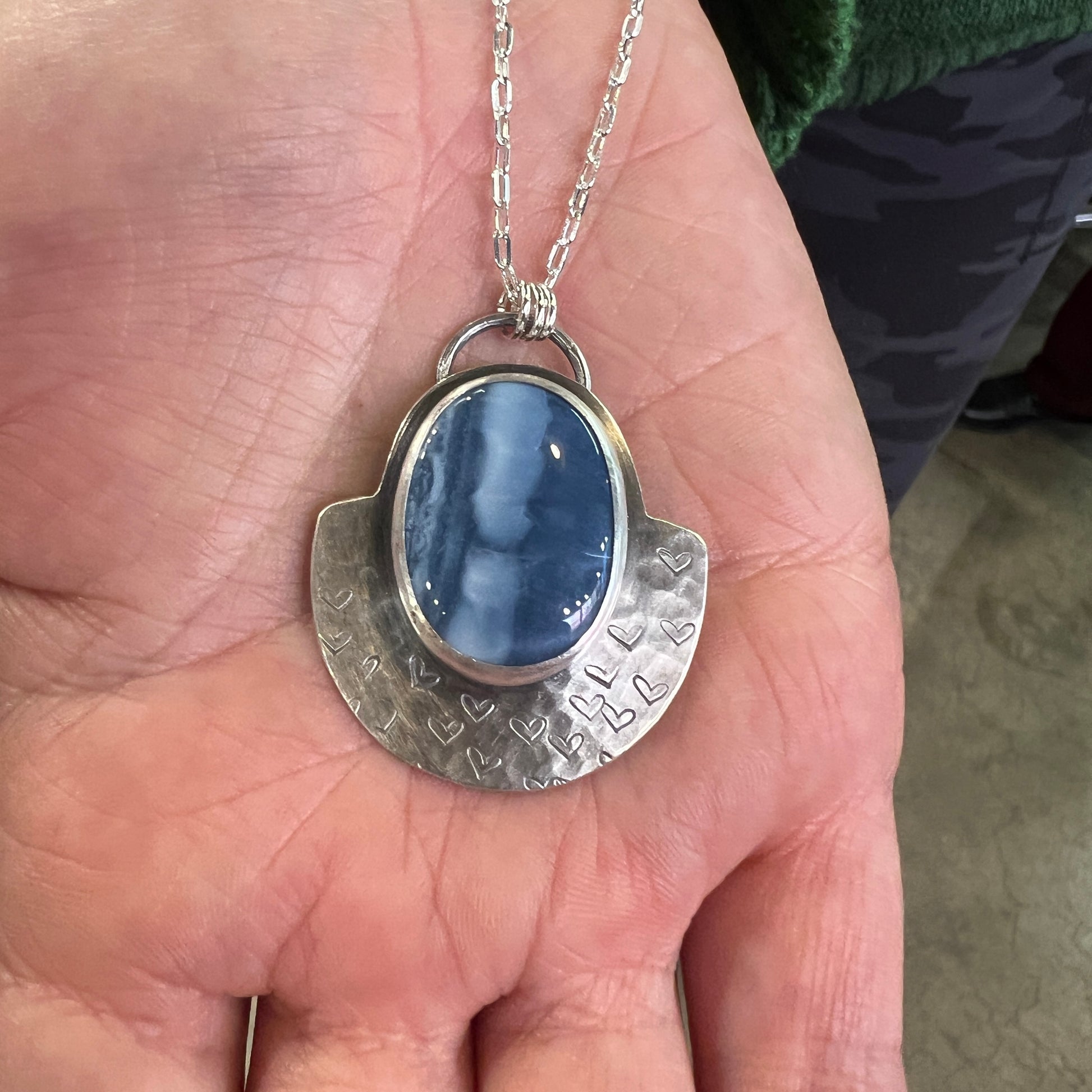 In this fun and challenging class students will learn how to make a bezel setting for a cabochon stone (which has a flat bottom and rounded top). Stones will be available and included in the price. We will go over how to get a snug fit for the bezel, the basics of soldering, how to get a clean bond without melting your metal, general pendant design, and embellishments like stamping or hammered texture.