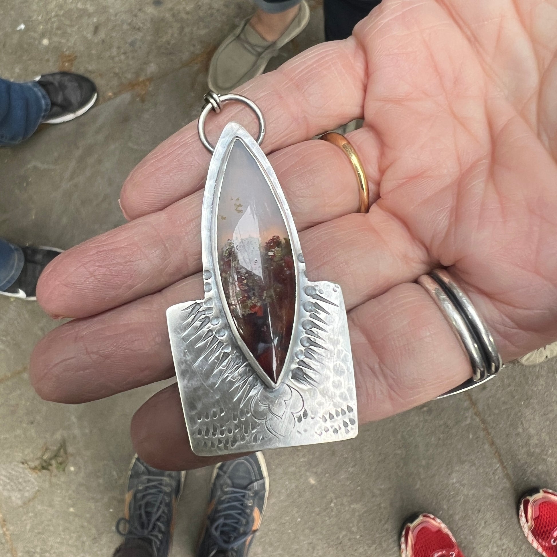 Included Materials - Brass and bronze for your backplate design, silver chain, silver clasp, silver bezel and a cabochon stone are all included in the price. A selection of stones will be available but feel free to bring your own to see if it will be a good option. This workshop does NOT include silver for the backplate design. If you want to purchase silver it is about $20 for medium size pendant design.