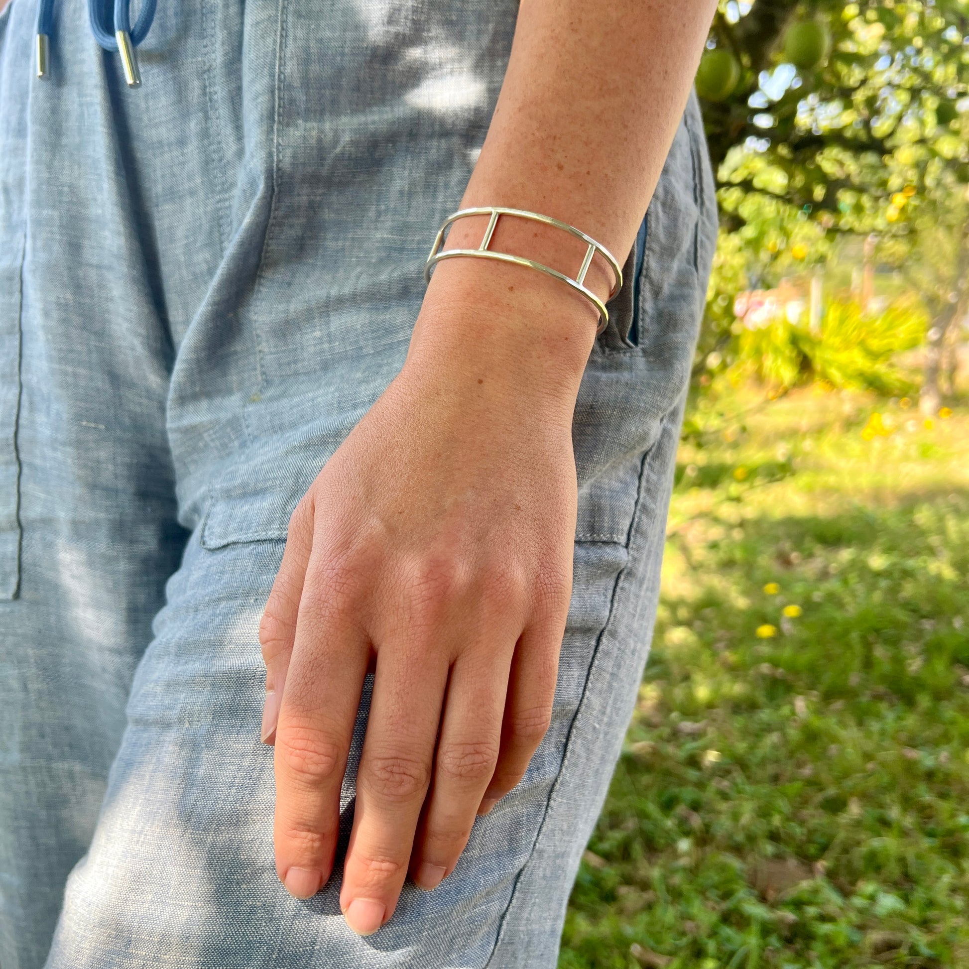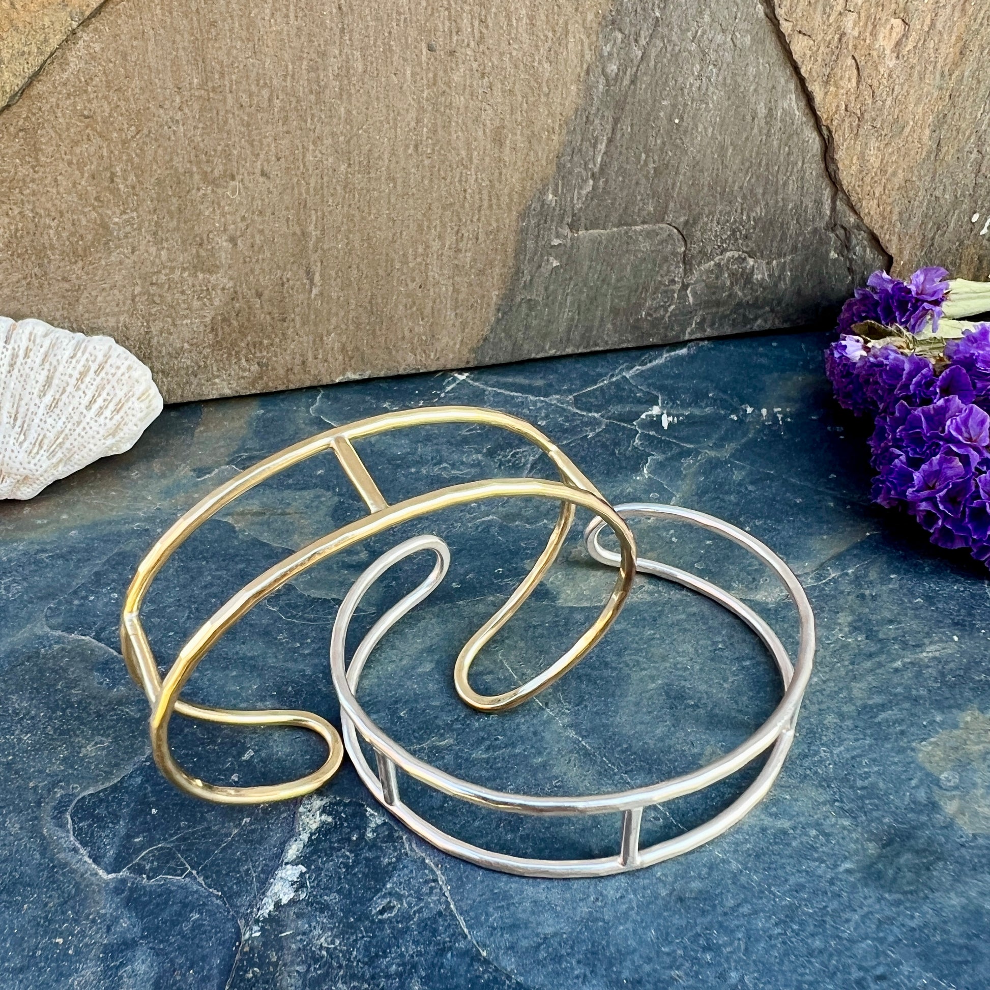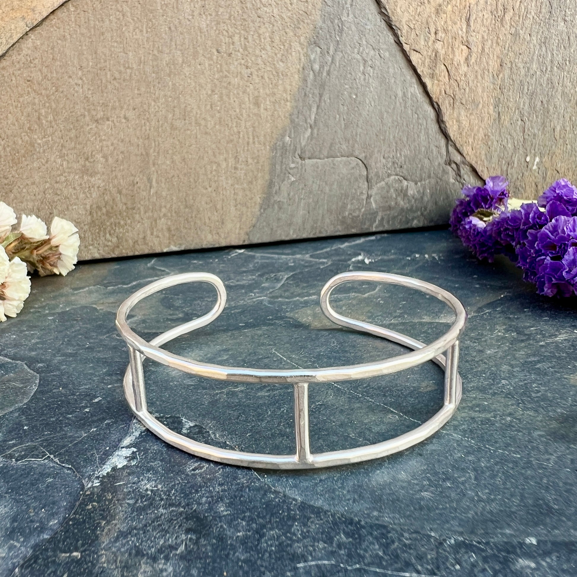 These cuff bracelets are a sleek modern design but still have that "made by hand" feel. Each one is hand hammered and no two will be exactly the same.