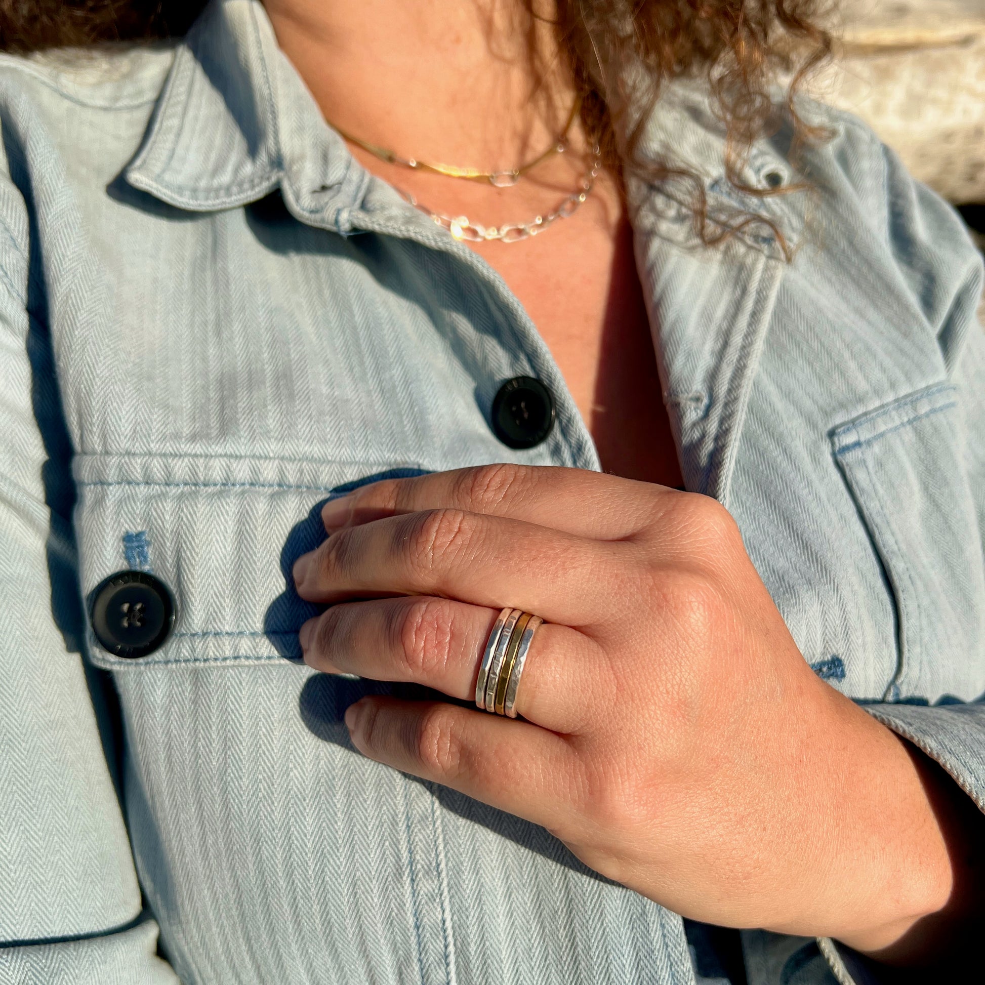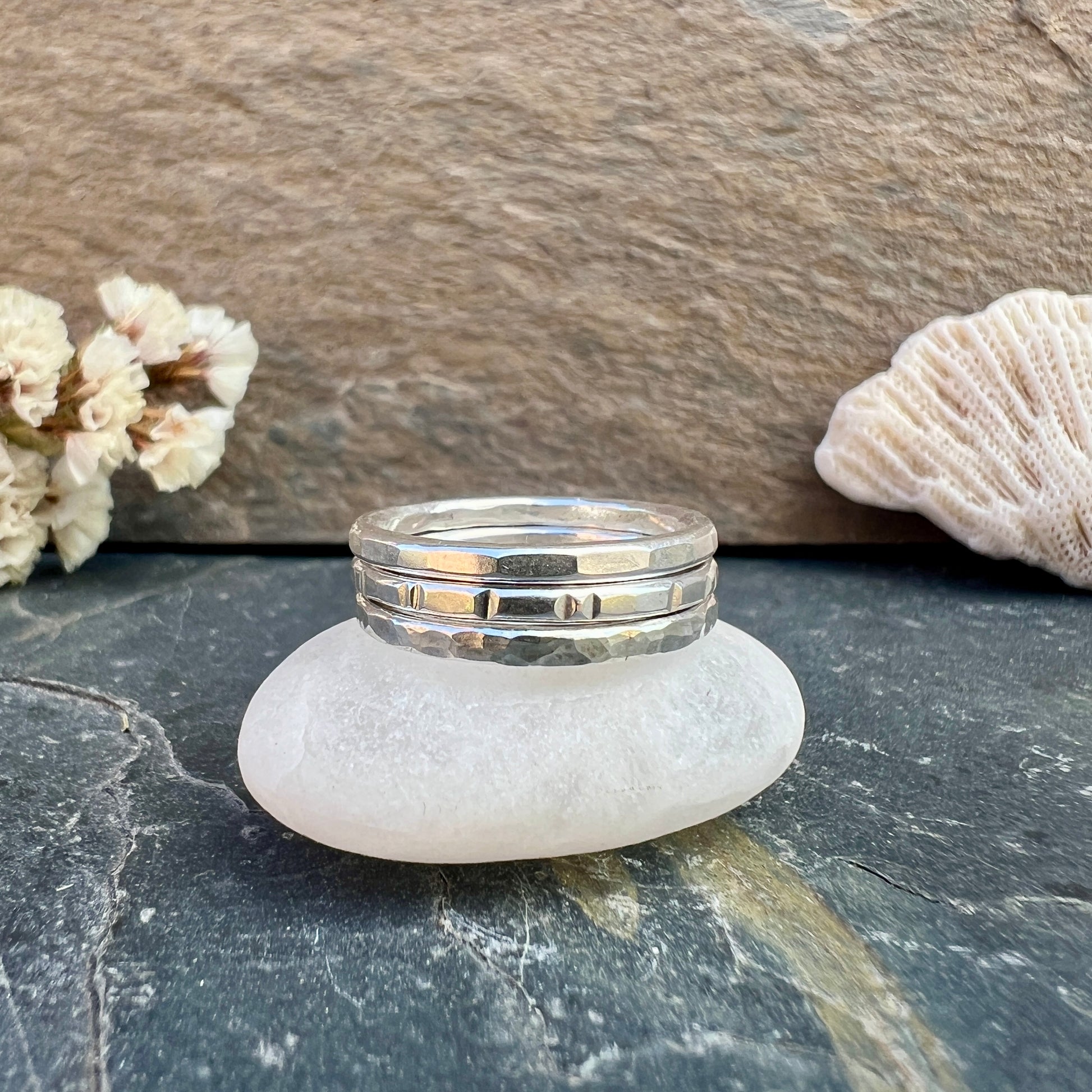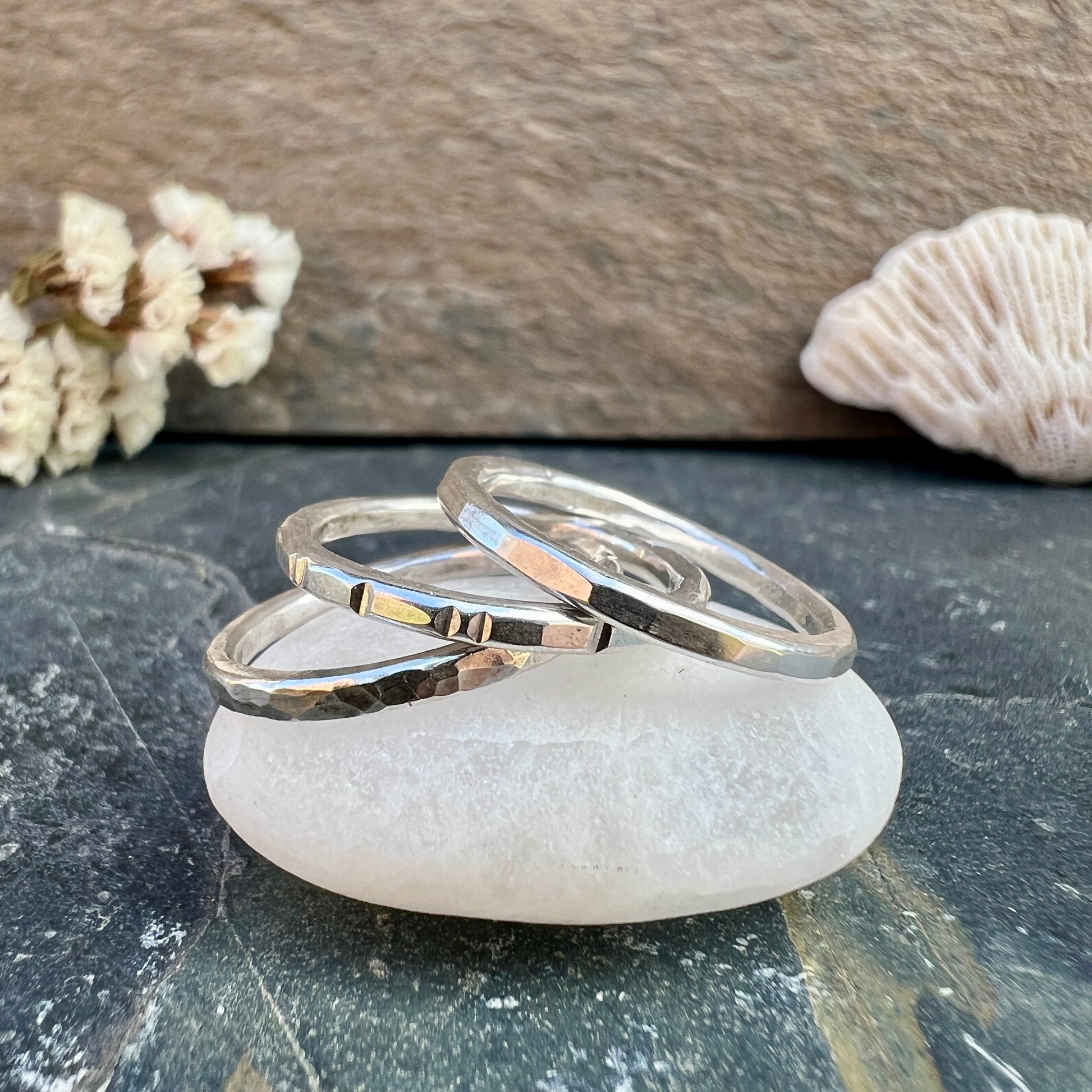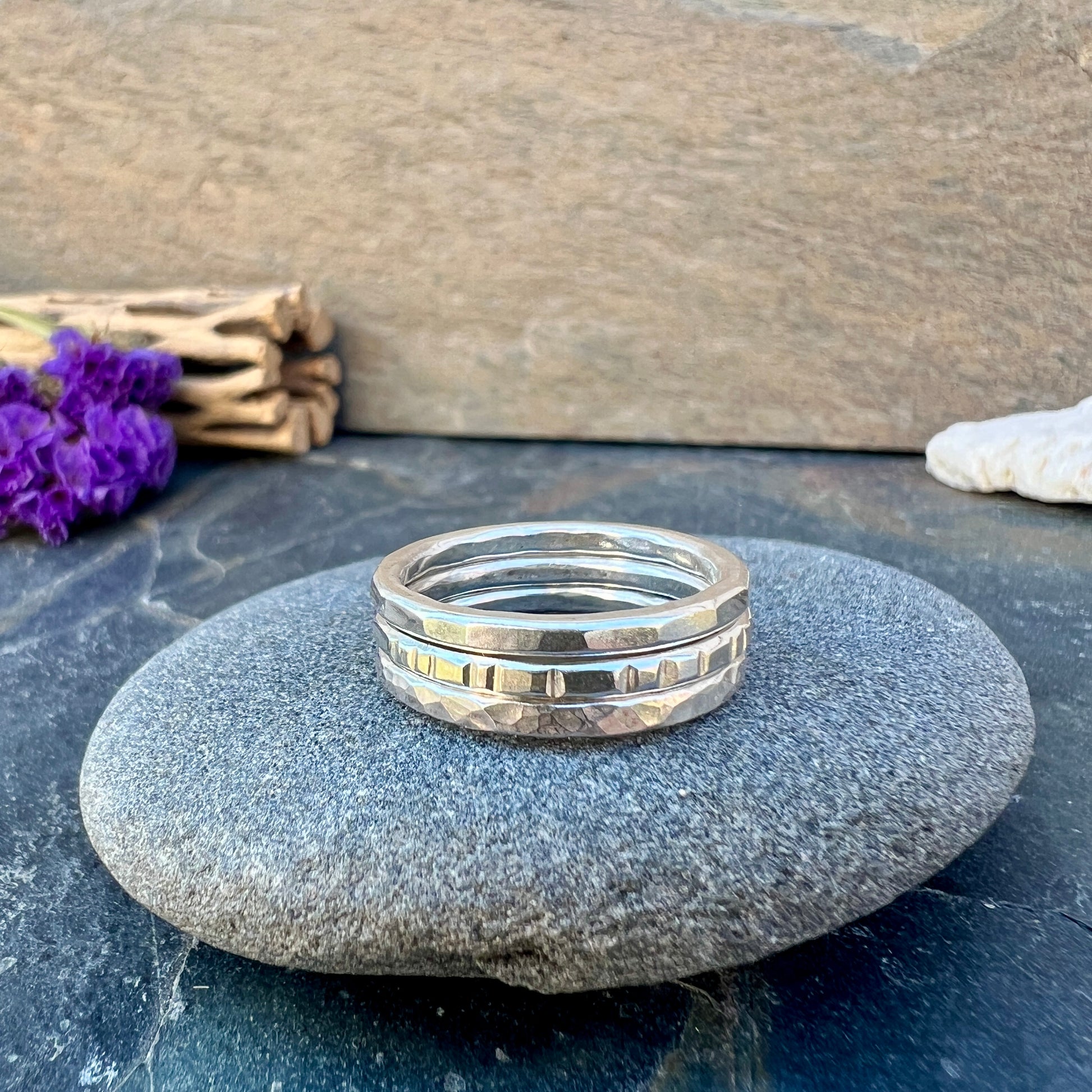 Classic stacking rings in silver material.