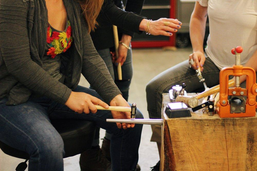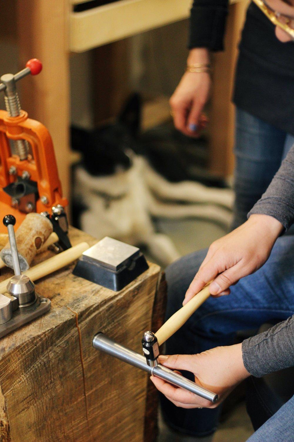 Do you want your very own custom stack of silver and mixed metal rings? Or a wide hammered silver band? Options are to make 4 stacking rings OR one wide sliver band with one stacker. This class is also great for men or people with a bold style because there is an option to make a wide silver band instead of a stacking set. Students will measure their ring sizes and learn how to accurately cut the correct length of wire for their size. We will discuss the basics of soldering and learn some hammering techniques to achieve your very own unique stack. Measure, cut forge, solder, clean, and polish.